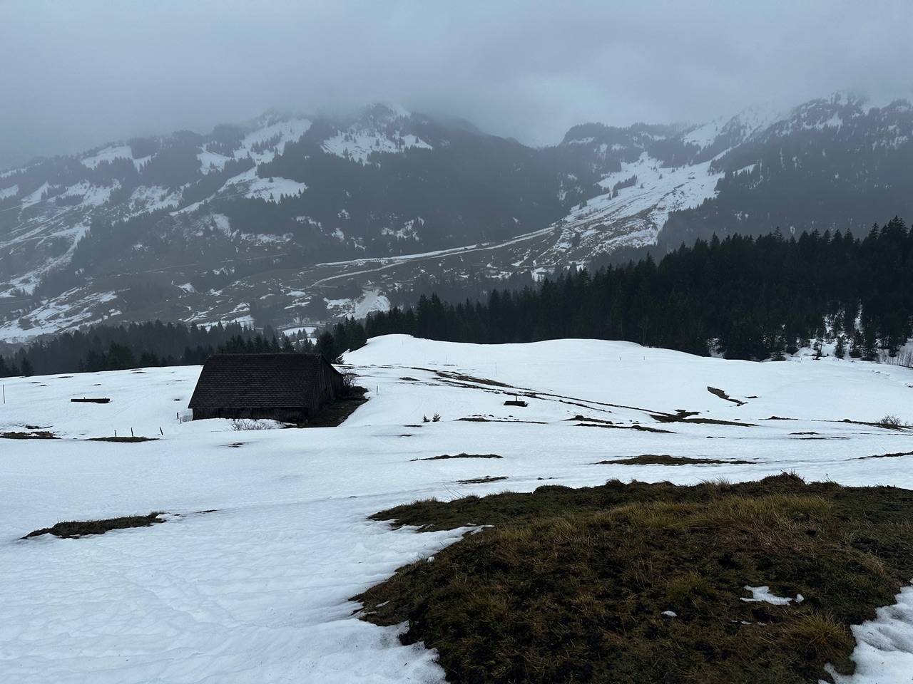 - Meistens feucht von oben; Sonne ab und zu zu erahnen; ab Mittag deuten sich vereinzelte Aufhellungen an. Schnee durchfeuchtet; Schneedecke nicht überall kompakt und durchgehend.