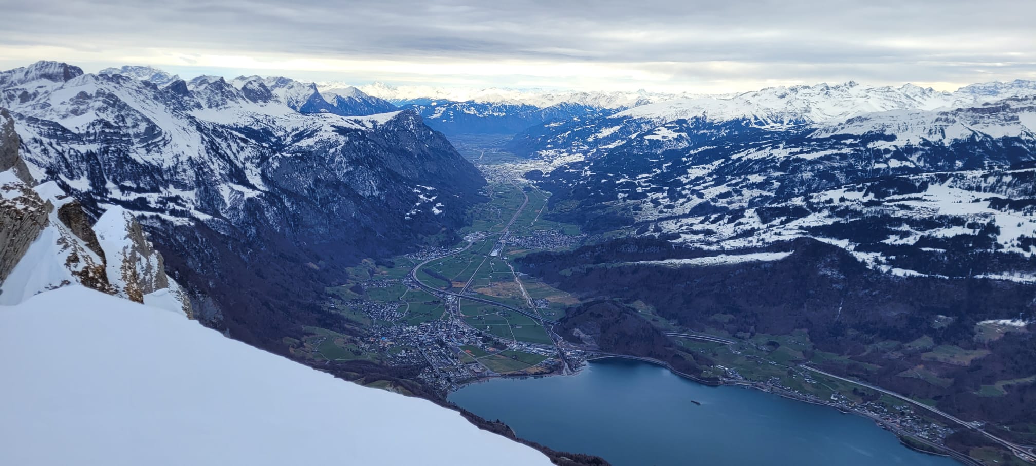 Letztes Jahr lag im unteren Teil für die Skitour zum Firzstock gar kein Schnee. Dieses Jahr immerhin ein Schäumchen; aber für eine Skitour zuwenig.. Vielleicht klappt es ja nächstes Jahr… So entschied ich mich für eine Ersatztour auf den Selun. Die Wetterprognosen sprachen von letzten Aufhellungen im Osten und aufkommenden stürmischen Winden.