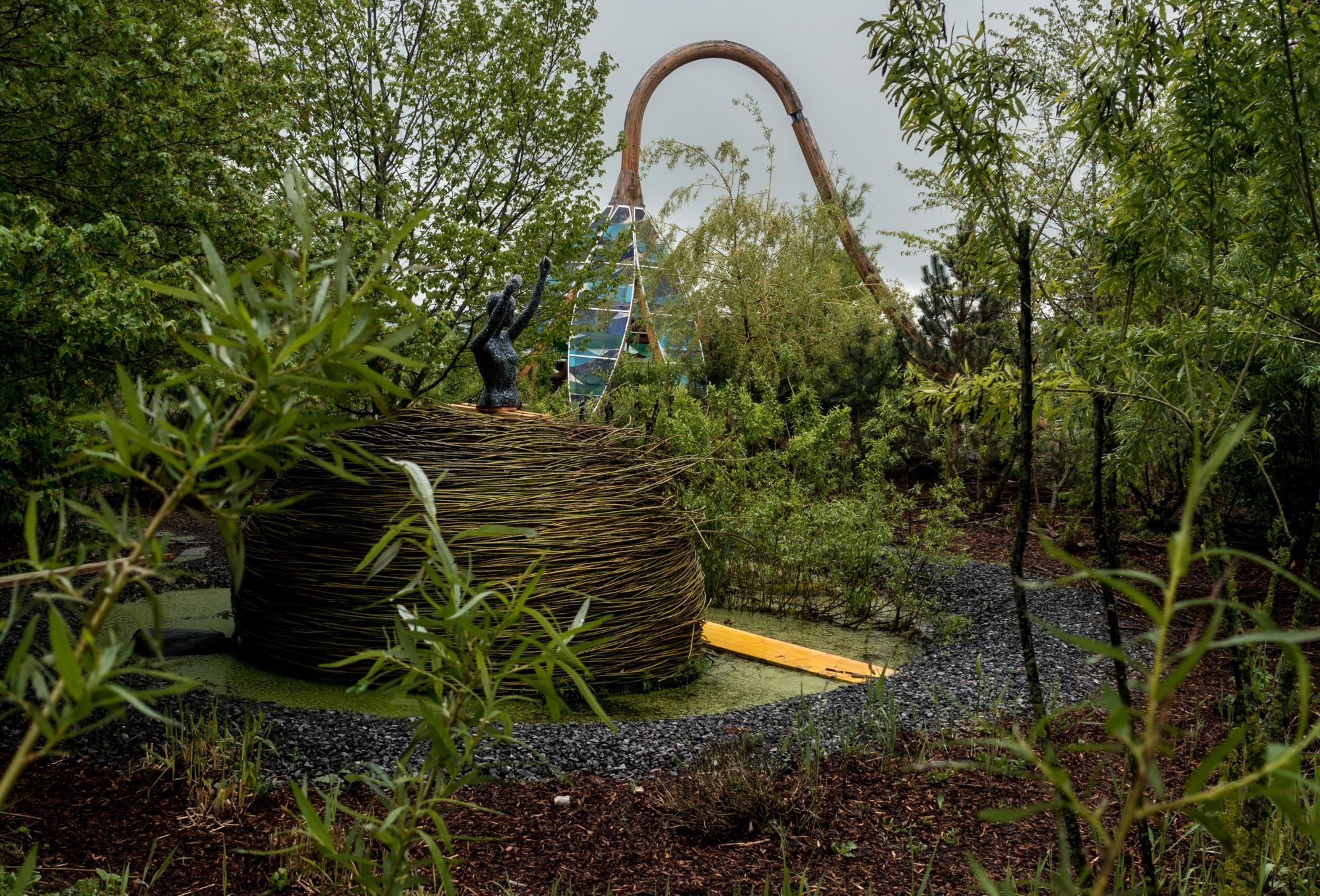 Um Zeit aufzuholen beschränkten wir uns darauf den von der Strasse einsehbaren Permakultur-Garten sowie zahlreiche Insekten darstellende Weidengeflechte zu bestaunen. Nach dem letzten Bauernbetrieb folgte ein nur schwer passierbarer Feldweg, starke Regenfälle hinterliessen grosse Pfützen und morastige Seitenränder.
