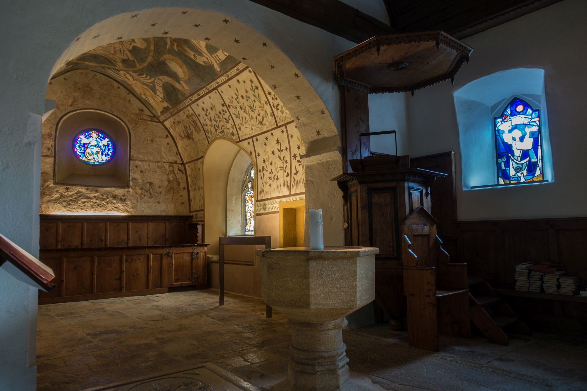 In der Kirche Engollon besichtigten wir die einzigen alten Wandbilder des Kantons Neuenburg, stiegen dann in den Graben des Seyon ab und folgten der Hauptstrasse bis Valangin, wo uns im Restaurant du Château das leckere Mittagessen erwartete.