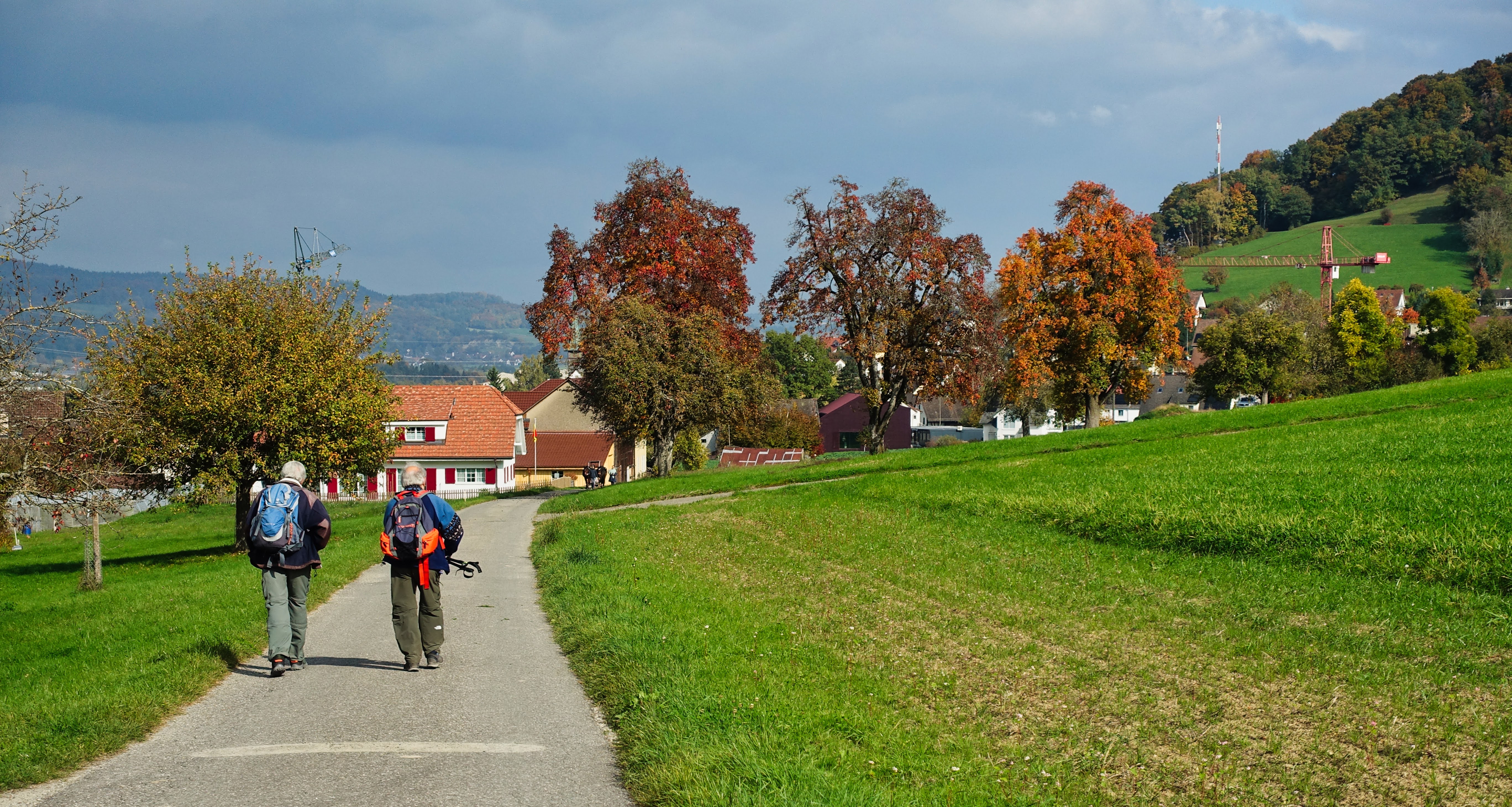 Weiter folgten wir dem Wanderweg über Pkt. 469 und nun folgte der Abstieg durch die Steigenhalden in die offenen Felder von Breitenächer. Vor uns sahen wir das Dorf Stalden mit dem Aussichtsturm auf dem Stadlerberg. Im Dorf Stalden machten wir noch eine kurze Trinkpause.