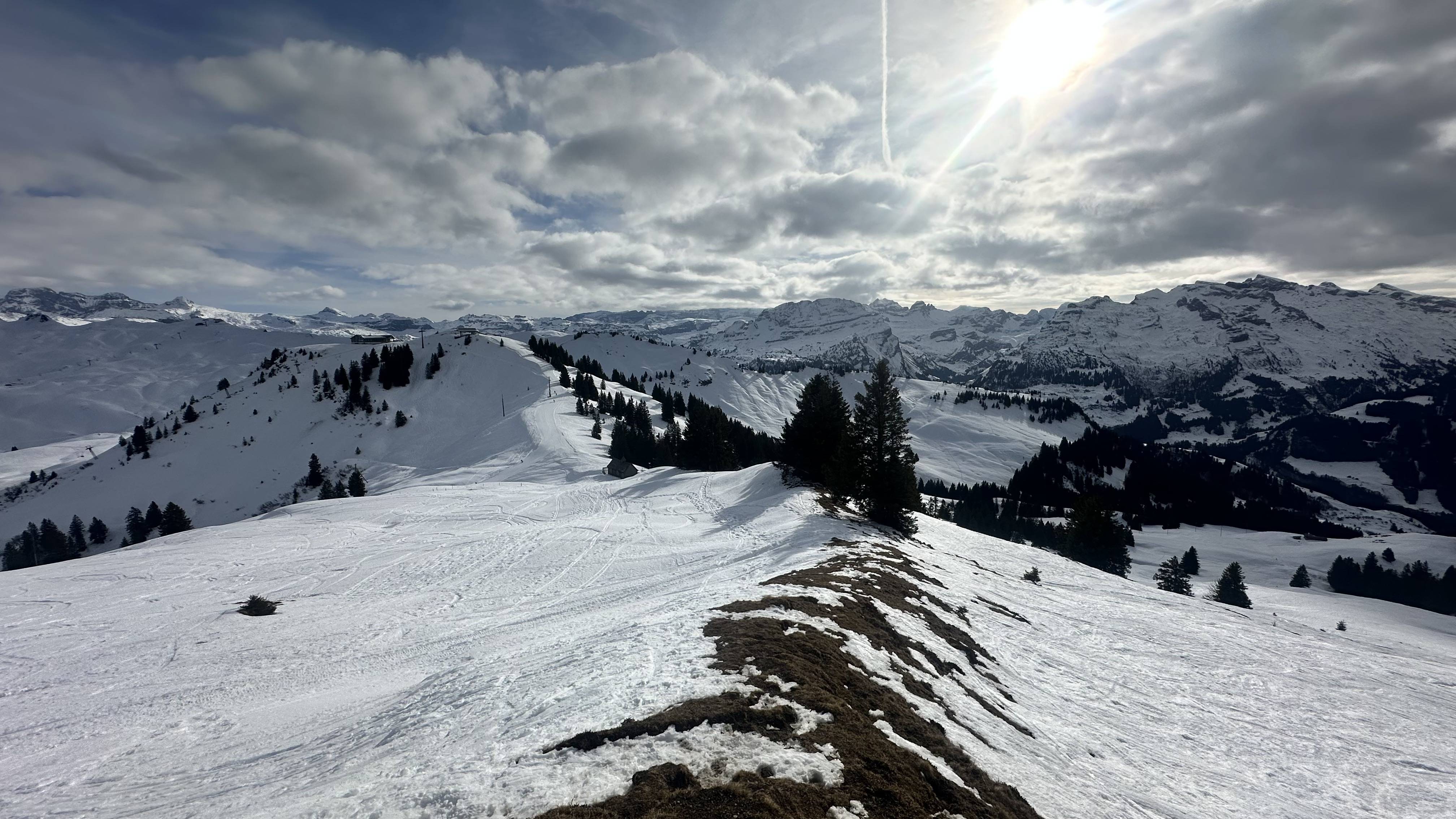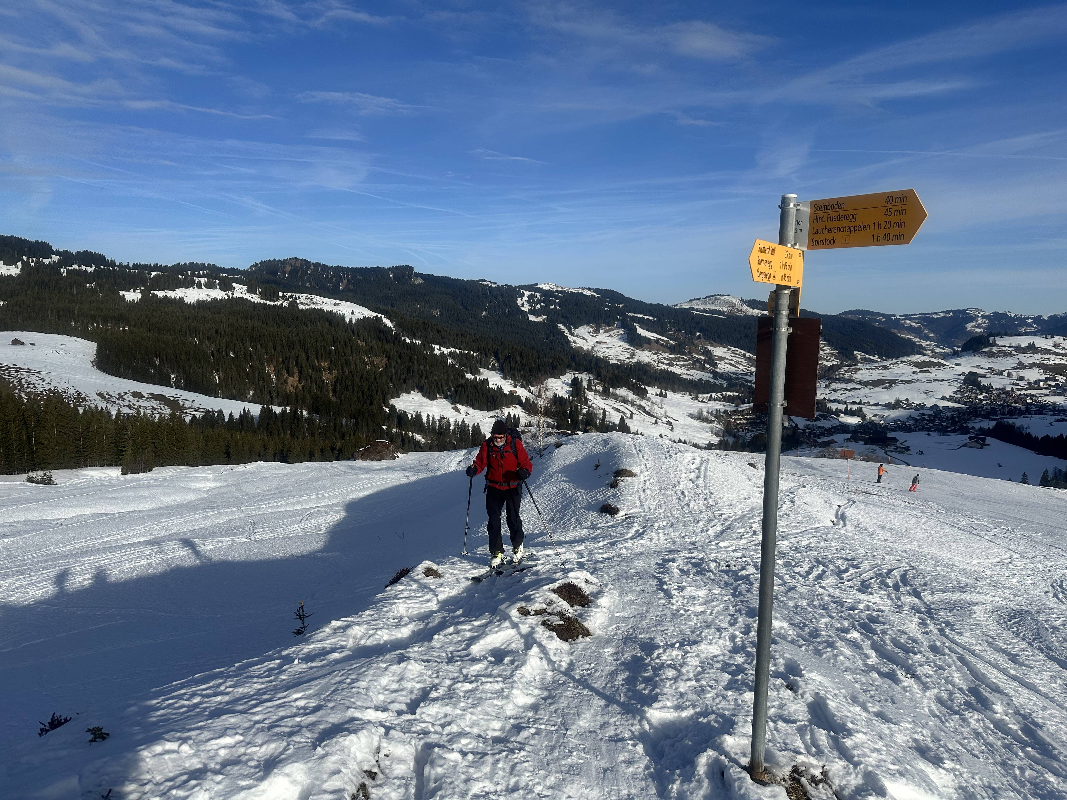 - Meist sonnig, mit zeitweise leichter Bewölkung und Vorboten einer Störung aus Westen; angenehme Temperaturen und wenig Wind. Schneedecke praktisch durchgehend vorhanden, infolge längerer Abwesenheit des letzten Schneefalls aber alles verspurt, verfahren, verkrustet, verhärtet, vertrampelt...